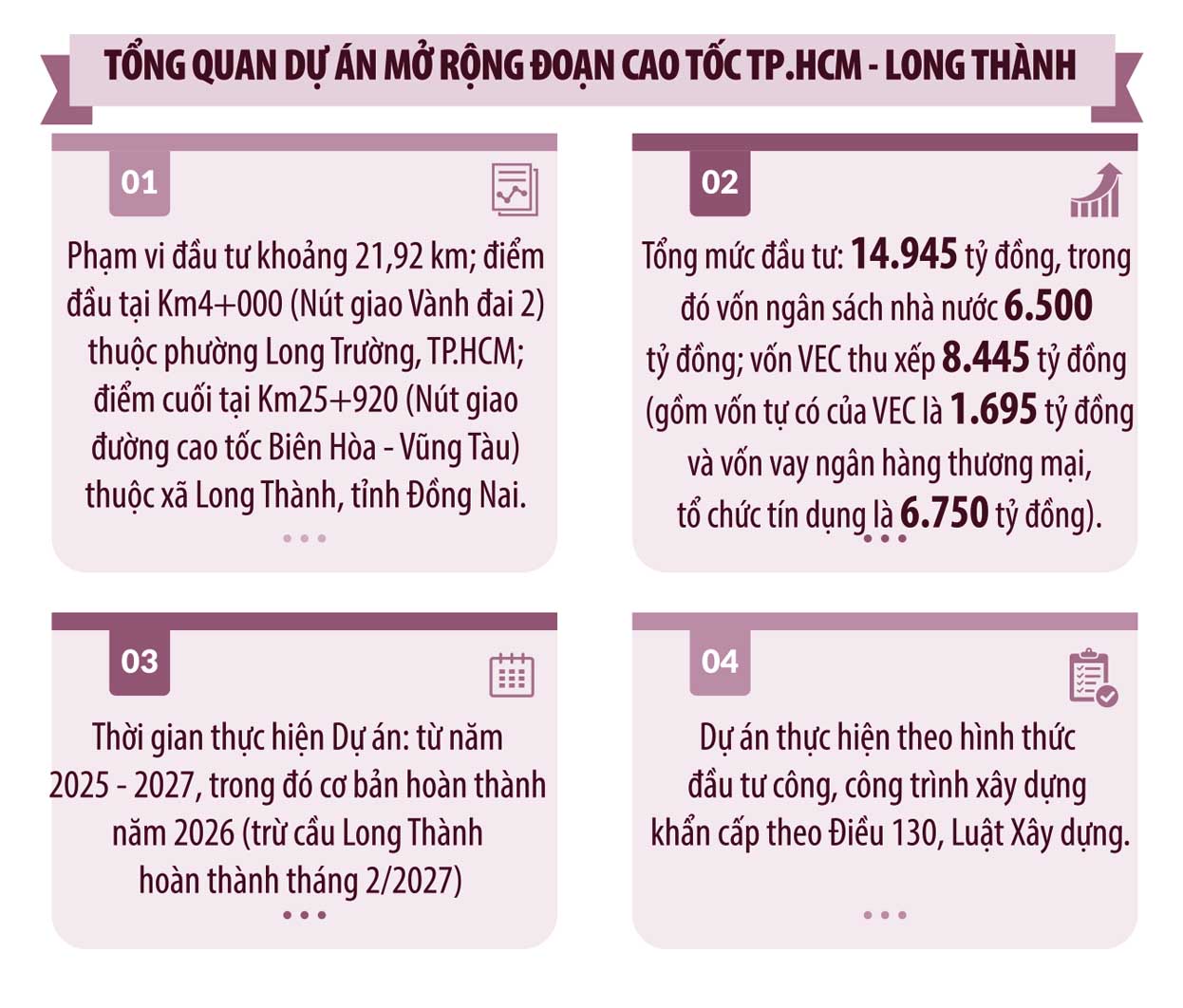 “Trong bất cứ hoàn cảnh nào, chúng tôi sẽ cố gắng cao nhất để cơ bản hoàn thành toàn bộ Dự án mở rộng đoạn cao tốc TP.HCM - Long Thành vào tháng 12/2026, kịp phục vụ người dân tiếp cận Cảng hàng không quốc tế Long Thành thuận lợi và an toàn”, lãnh đạo VEC cam kết.