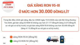 Giá xăng dầu tăng từ 23h ngày 19/3, xăng RON 95 tăng hơn 5.000 đồng, lên 30.690 đồng/lítTrong kỳ điều hành tối 19/3, giá xăng dầu tăng sau 2 phiên giữ nguyên với mức tăng dao động 3.520-9.000 đồng/lít. Sau điều chỉnh, giá bán lẻ với xăng E5 RON 92 là 27.170 đồng/lít và xăng RON 95 là 30.690 đồng/lít. -