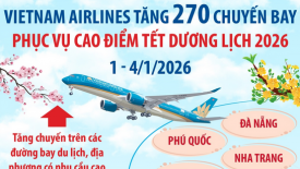 Vietnam Airlines tăng 270 chuyến bay phục vụ cao điểm Tết Dương lịch 2026Nhằm đáp ứng nhu cầu đi lại của người dân trong dịp Tết Dương lịch 2026, Vietnam Airlines triển khai tăng chuyến trên nhiều đường bay nội địa trọng điểm. -