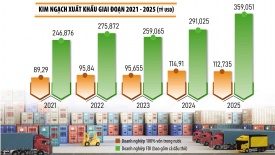Tổng kim ngạch xuất, nhập khẩu hàng hóa tháng 12/2025 chứng kiến con số cao chưa từng thấy, đạt 88,72 tỷ USD, tăng 15,1% so với tháng trước và tăng 25,7% so với cùng kỳ năm trước, theo Cục Thống kê.