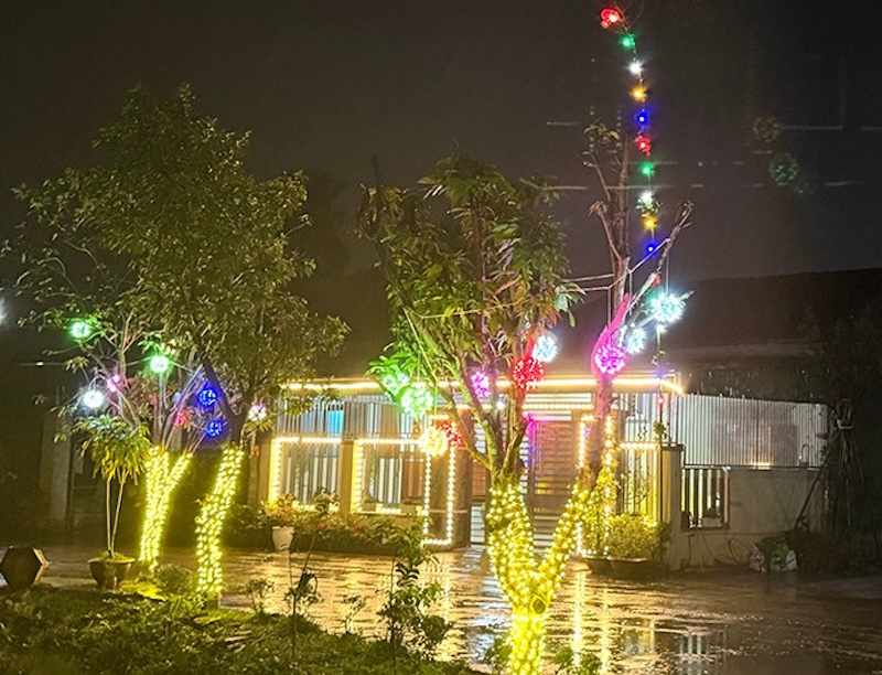 | Trang trí đèn đón Tết cũng được các nhân viên điện lực lưu ý đảm bảo an toàn chập điện và cháy nổ. Ảnh: BHT. |
