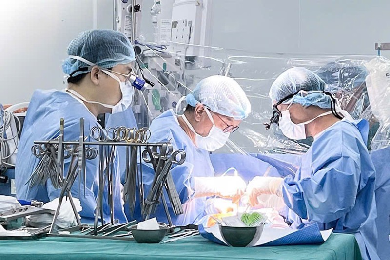 Trong ca mổ kéo dài hơn 5 giờ, bác sỹ tạm ngưng máy tạo nhịp, mở tim phải và tĩnh mạch chủ trên để tạo đường hầm chuyển hướng máu từ tĩnh mạch phổi về nhĩ trái, đồng thời giữ lại các đường lưu thông tự nhiên để phòng ngừa hẹp sau này. Sau phẫu thuật, bệnh nhân được kiểm tra và kích hoạt lại máy tạo nhịp an toàn.