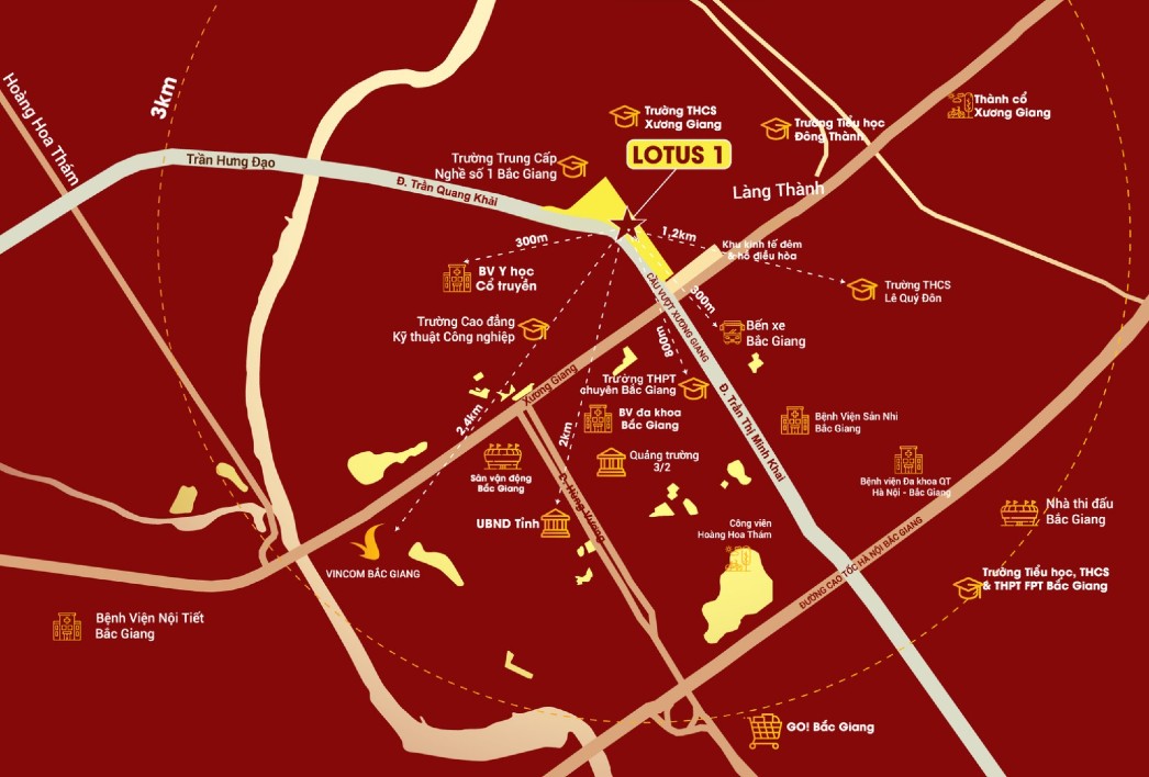 Đây là khu vực phát triển bậc nhất trung tâm tỉnh, được quy hoạch đồng bộ về hạ tầng giao thông và tiện ích đô thị. Từ dự án, cư dân tương lai dễ dàng kết nối tới các công trình trọng điểm như bệnh viện, bến xe, quảng trường, khu thể thao, cũng như nhanh chóng di chuyển ra cao tốc Hà Nội – Bắc Giang.