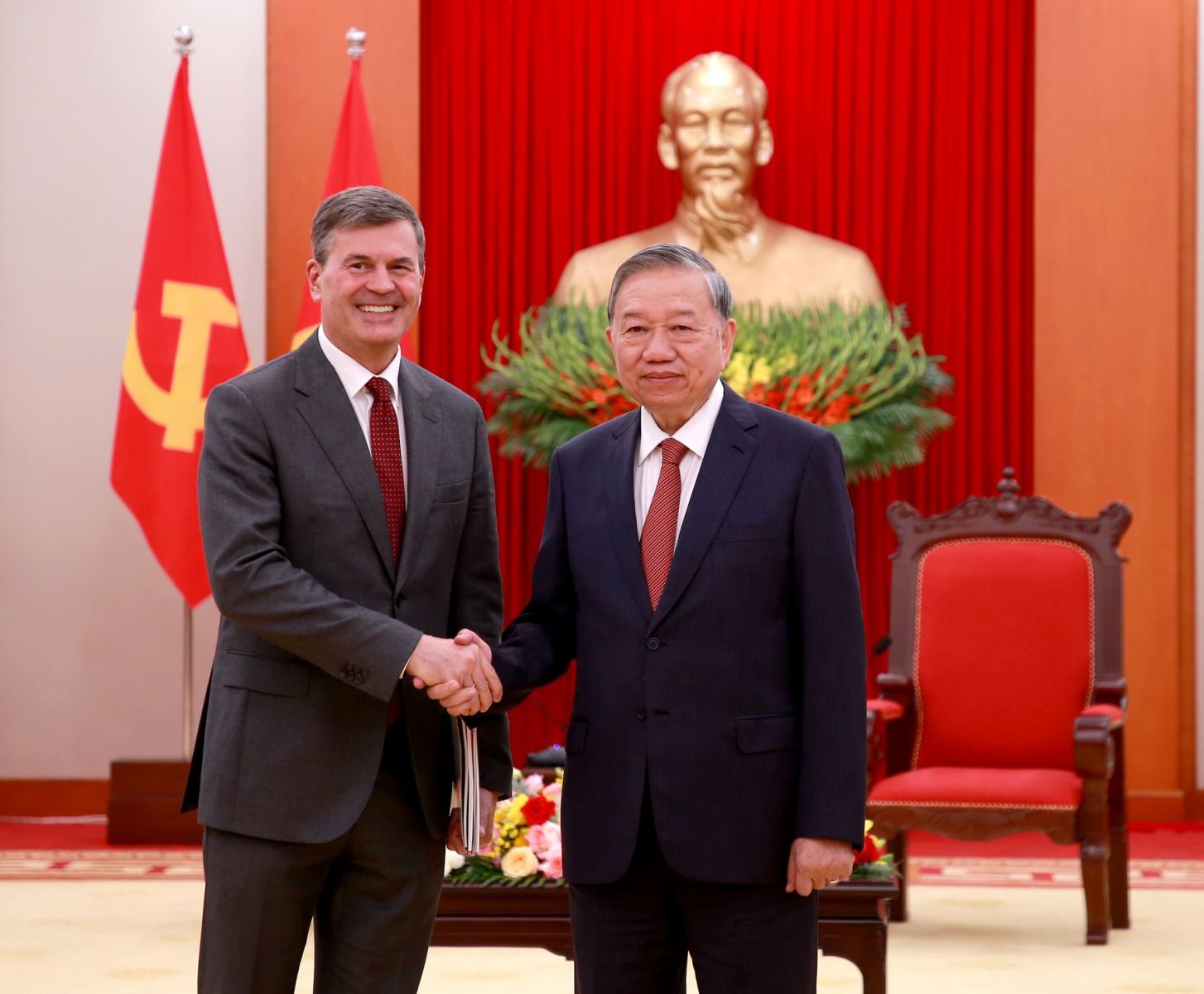 Tổng Bí thư Tô Lâm hoan nghênh Giám đốc Học viện Tổng thống Nga và Đoàn đại biểu cấp cao sang thăm Việt Nam; đánh giá cao vai trò của Học viện, cơ sở đào tạo hàng đầu của Liên bang Nga trong lĩnh vực quản trị nhà nước, hoạch định chính sách công và chuẩn bị đội ngũ cán bộ lãnh đạo, công chức cao cấp.