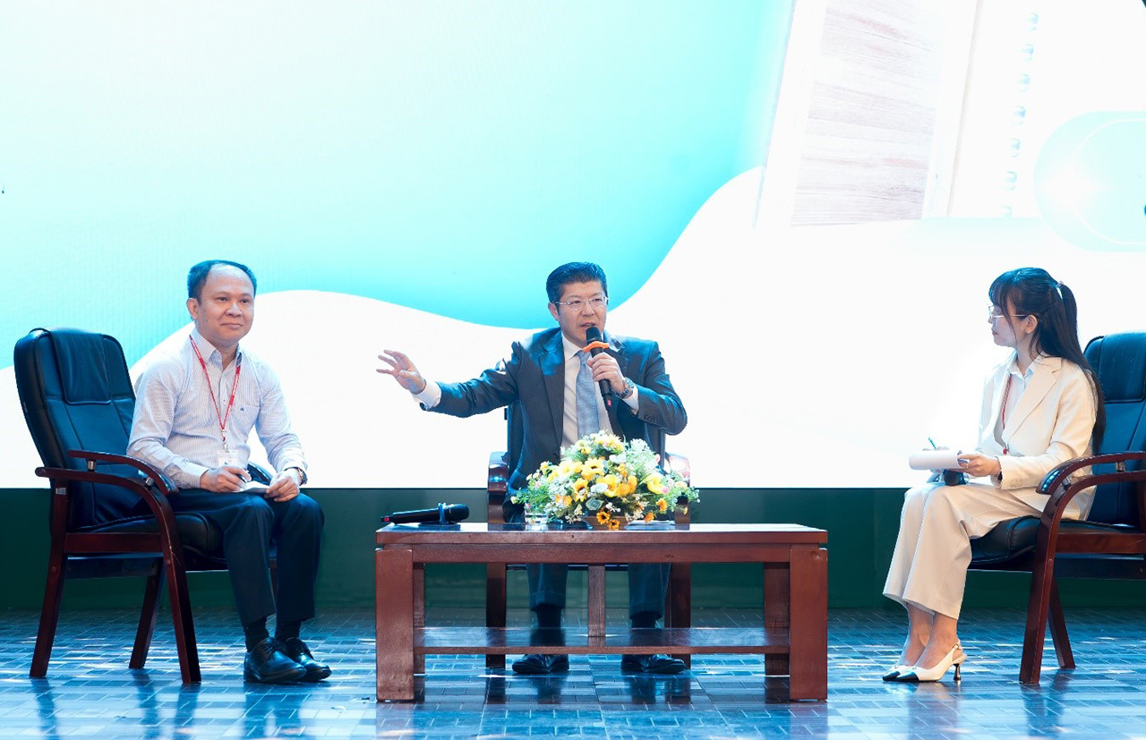 Ông Tsutomu Nara chia sẻ về phương thức quản trị dựa trên Mục đích tồn tại. (Ảnh: Hữu Hạnh) |