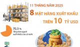 Điểm tên 8 mặt hàng xuất khẩu trên 10 tỷ USD sau 11 tháng năm 2025 -