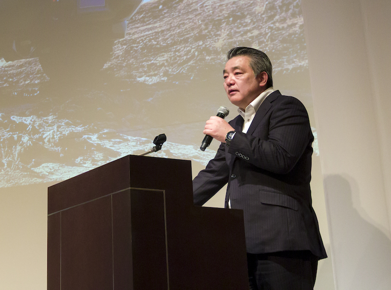 | Ông Kojji Sato, Chủ tịch kiêm Tỏng giám đốc điều hành Toyota Motor Nhật Bản giới thiệu nền tảng cho dòng sản phẩm IMV mới. |