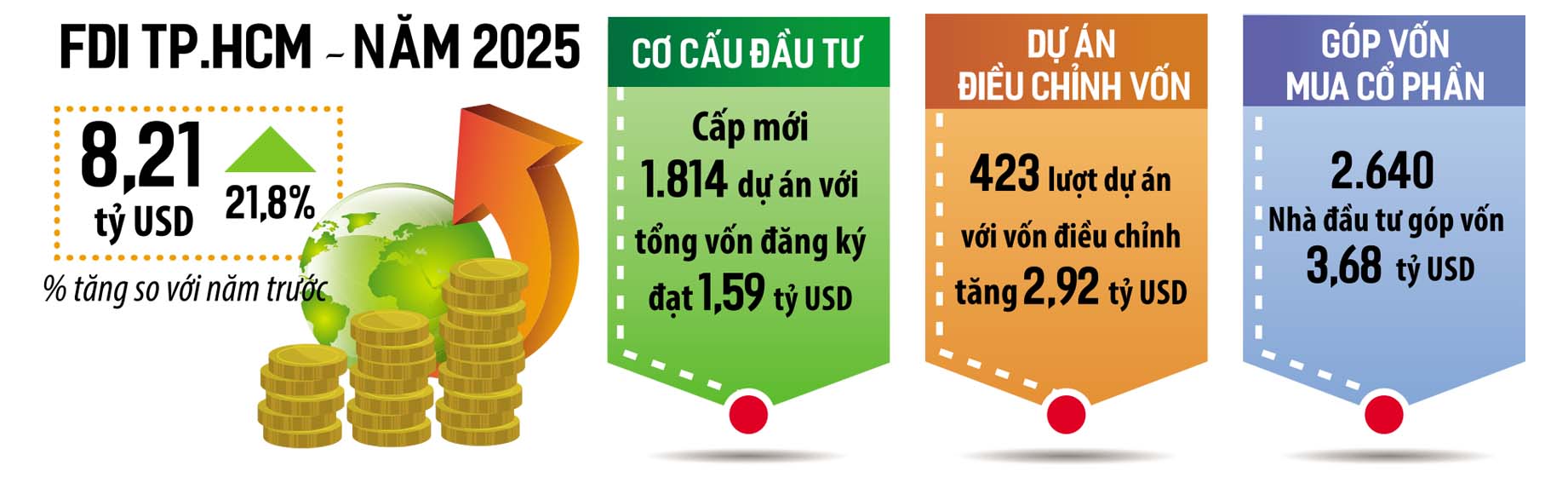 Sự quan tâm của nhà đầu tư được thể hiện rõ qua con số 8,21 tỷ USD vốn FDI mà TP.HCM thu hút được trong năm 2025, tăng 21,8% so với năm trước. Điều này cho thấy, niềm tin của nhà đầu tư vào môi trường đầu tư của Thành phố đang được củng cố vững chắc.