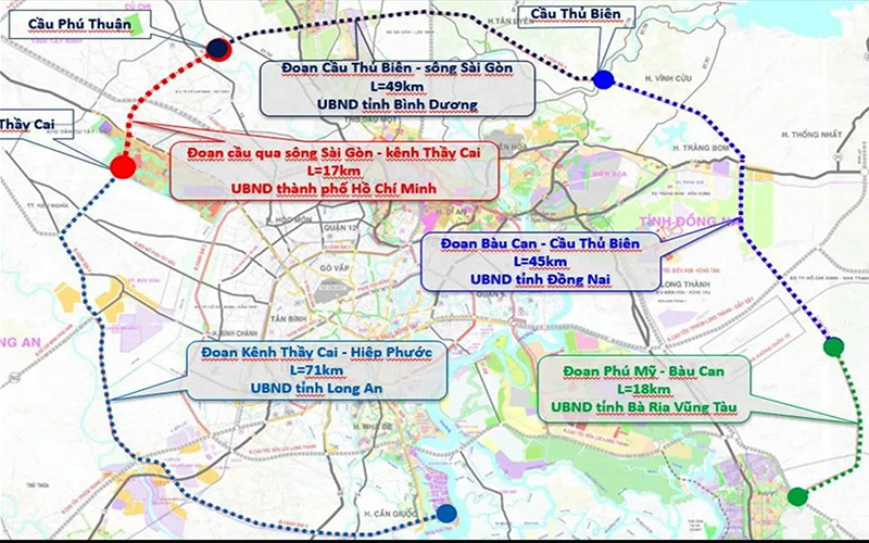 Dự án đường Vành đai 4 TP.HCM được Quốc hội thông qua chủ trương đầu tư vào ngày 27/6/2025. Tuyến đường này có tổng chiều dài hơn 207 km, đi qua ba địa phương gồm: TP.HCM, Đồng Nai và Tây Ninh. Riêng đoạn đi qua khu vực Bình Dương (cũ) dài gần 48 km đã khởi công vào tháng 6/2025.