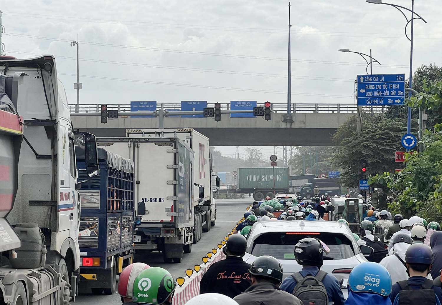 Khu vực vào cảng Cát Lái hiện nay thường xuyên xảy ra ùn tắc. Ảnh: Trọng Tín. |
