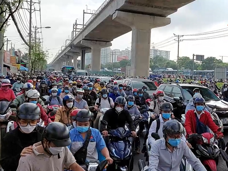 | Do có nhiều tuyến đường giao cắt nên Xa lộ Hà Nội thường xuyên xảy ra tình trạng kẹt xe vào các khung giờ cao điểm |