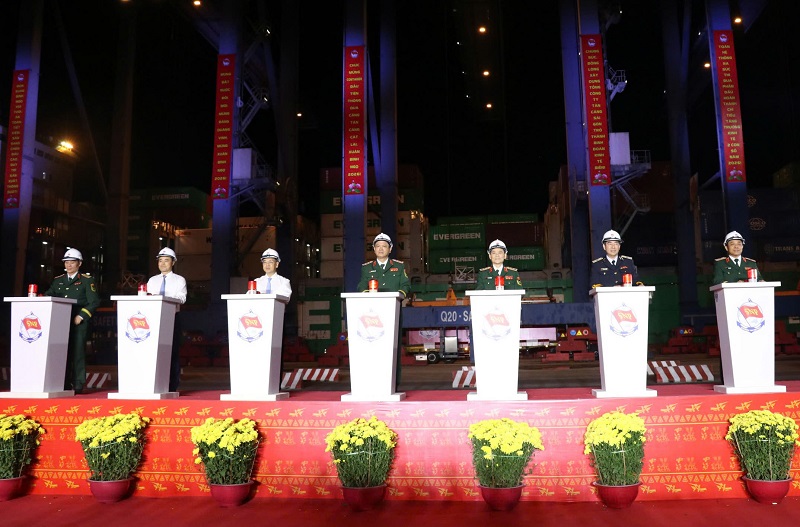 | Nghi thức phát lệnh làm hàng đầu Xuân Bính Ngọ tại cảng Cát Lái - Ảnh: L.Q |