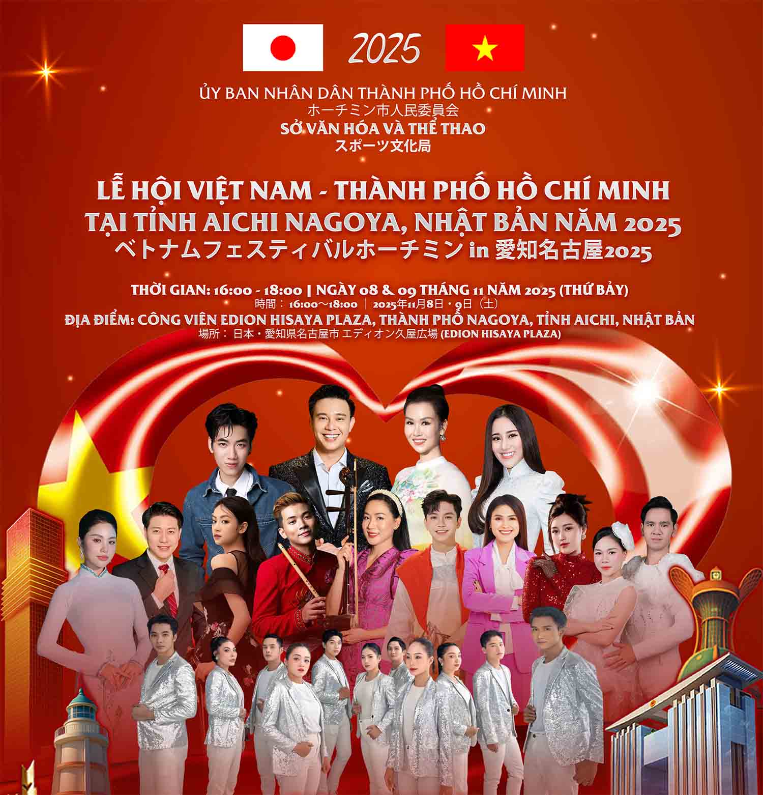 Poster chương trình Lễ hội Việt Nam – TP.HCM 2025 tại tỉnh Aichi, Nhật Bản |