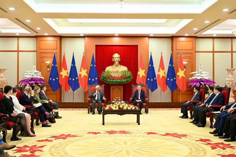 Về quan hệ Việt Nam – EU, Tổng Bí thư khẳng định Việt Nam coi trọng vai trò của EU và quan hệ Việt Nam - EU, đánh giá cao việc Việt Nam là nước ASEAN đầu tiên có quan hệ Đối tác chiến lược toàn diện với EU, khuôn khổ hợp tác song phương cao nhất, khẳng định đây là thời khắc lịch sử trong quan hệ song phương, phản ánh sự tin cậy chính trị và quyết tâm rất cao của hai bên.