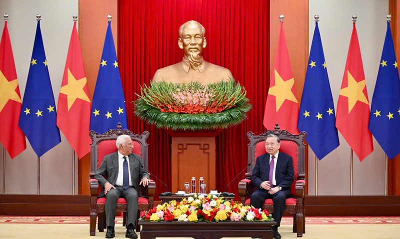 Về phần mình, Chủ tịch Hội đồng Châu Âu Antonio Costa bày tỏ vui mừng đến thăm chính thức Việt Nam ngay sau khi diễn ra Đại hội Đảng Cộng sản Việt Nam và thay mặt EU nhiệt liệt chúc mừng Tổng Bí thư Tô Lâm được bầu lại giữ trọng trách lãnh đạo cao nhất, tiếp tục dẫn dắt công cuộc cải cách của Việt Nam trong kỷ nguyên mới.