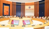 Hiện nay, Tổng Hành dinh Quân đội Nhân dân Việt Nam (Nhà và Hầm D67) là một di tích quan trọng trọng Di sản thế giới Khu Trung tâm Hoàng thành Thăng Long - Hà Nội. Ảnh: Phòng họp Bộ Chính trị và Quân ủy Trung ương (1968 - 1980) tại di tích Nhà D67. |