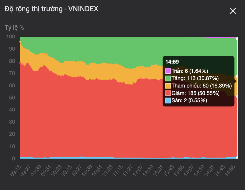 Lượng các cổ phiếu tăng - giảm trên HoSE hôm nay. |