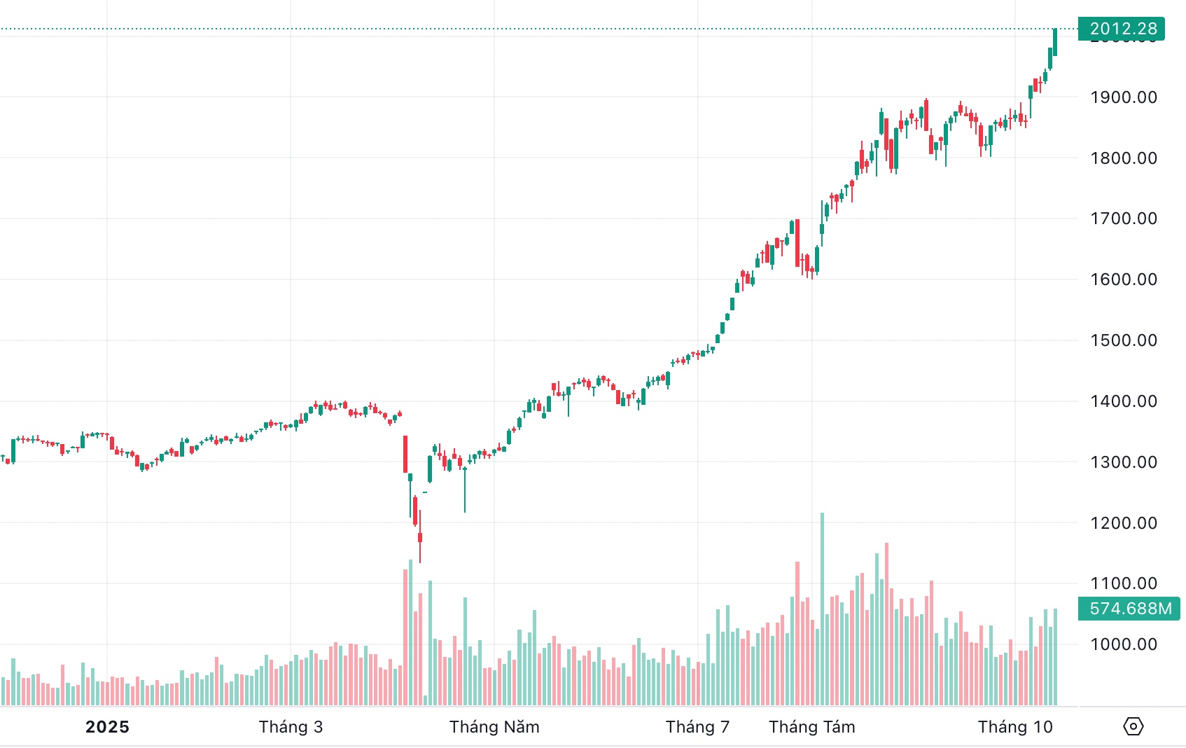 Chỉ số VN30 tăng liên tiếp vượt ngưỡng 2.000 điểm. |