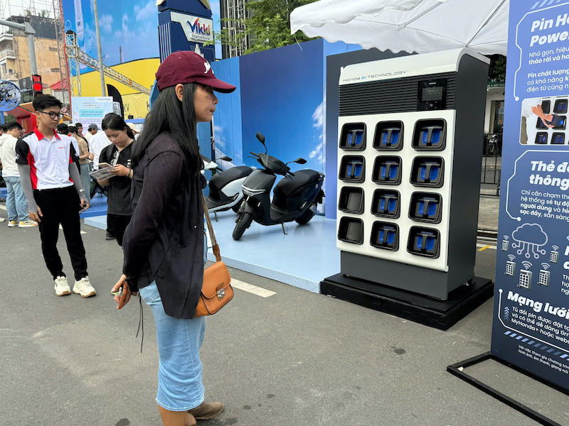 Mô hình tủ đổi pin của Honda Việt Nam cũng thu hút được sự chú ý của người tiêu dùng tới sự kiện Honda Thank Day 2025 tại TP.HCM khi việc hạn chế lưu hành xe máy động cơ xăng đang được đẩy mạnh tại một số thành phố lớn.