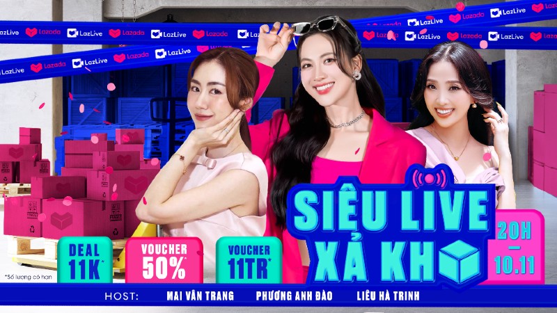 Với mong muốn tạo ra không khí mua sắm sôi động và chân thực, Lazada cũng thực hiện sự kiện livestream kéo dài 20 giờ, bắt đầu từ 20h ngày 10/11. Chương trình có sự tham gia của 3 livestreamer: Phương Anh Đào, Mai Vân Trang và Liêu Hà Trinh.