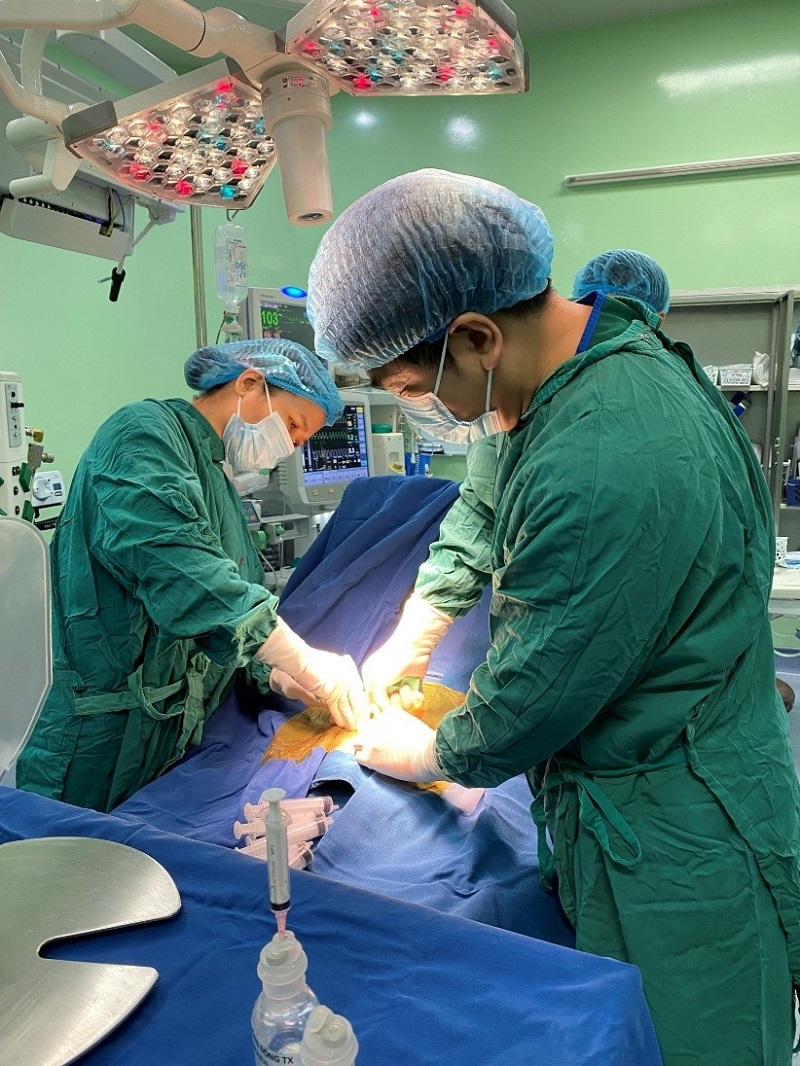 | Các bác sĩ thực hiện kĩ thuật sử dụng tế bào gốc trong mổ cho bệnh nhân teo đường mật bẩm sinh |