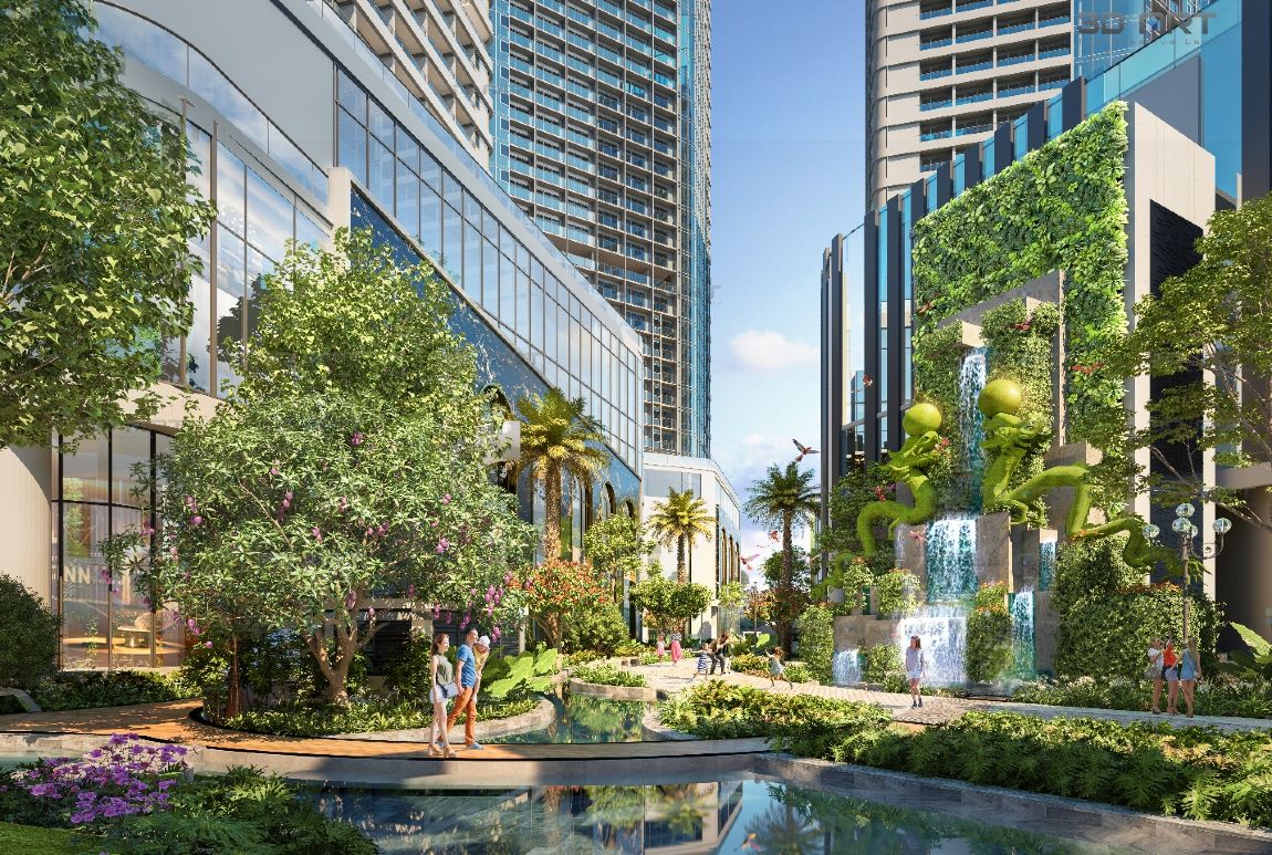 | Cảnh quan xanh mát nội khu bên cạnh vịnh biển sẽ là nơi nghỉ dưỡng hoàn hảo cho du khách cao cấp tại Tổ hợp Crystal Holidays Harbour Vân Đồn. Ảnh - Everland Group |