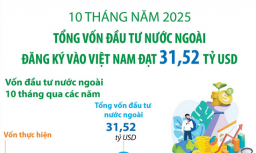 Tổng vốn đầu tư nước ngoài đăng ký vào Việt Nam đạt 31,52 tỷ sau 10 tháng năm 2025 -