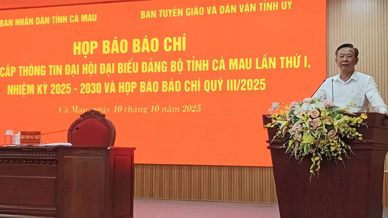 Phát biểu tại họp báo, Trưởng Ban Tuyên giáo và Dân vận tỉnh Cà Mau Hồ Trung Việt nhấn mạnh, đây là Đại hội đầu tiên của Đảng bộ Cà Mau sau hợp nhất mang ý nghĩa và tầm vóc mới, khi vị thế, không gian và tiềm lực của tỉnh đã Cà Mau được mở rộng và tăng cường, là Đại hội của niềm tin và khát vọng vươn mình trong kỷ nguyên mới.