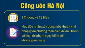 9 điểm chính của Công ước của Liên hợp quốc về chống tội phạm mạngCông ước Hà Nội gồm 9 chương, 71 điều; là khuôn khổ pháp lý toàn cầu đầu tiên về hợp tác chống tội phạm mạng trong gần 20 năm qua. -