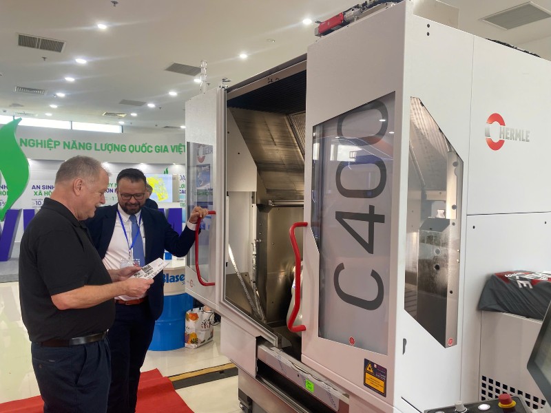Trong đó, Hermle AG - biểu tượng của kỹ nghệ Đức trong lĩnh vực gia công chính xác - đã mang tới máy gia công 5 trục C400, được trình diễn trực tiếp ngay tại sự kiện. Dòng máy gia công 5 trục Hermle là dòng máy số 1 thế giới về hiệu năng tổng thể, cho phép sản xuất ra các sản phẩm mới thay cho 8 đến 12 công đoạn gia công chế tạo truyền thống.