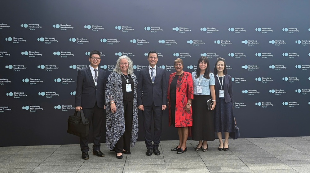 | Thứ trưởng Đặng Hoàng Giang và đoàn chụp ảnh với Lãnh đạo Bloomberg Media. |