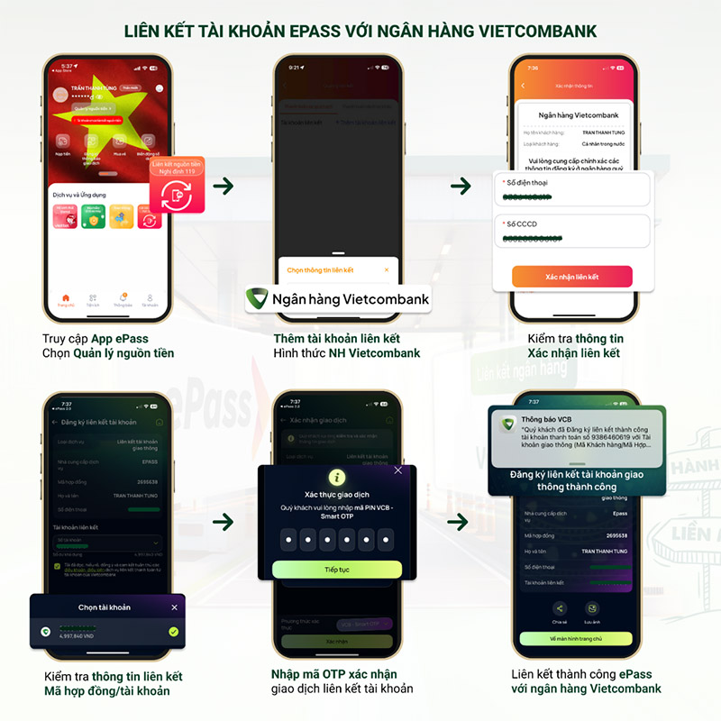 Với hình thức thanh toán mới này, khách hàng chỉ cần một lần đăng ký liên kết tài khoản Vietcombank với ePass thông qua ứng dụng ePass và VCB Digibank. Sau khi liên kết, hệ thống sẽ tự động trừ tiền từ tài khoản ngân hàng mỗi khi phương tiện qua trạm, đồng thời ghi nhận chi tiết giao dịch ngay trong lịch sử tài khoản Vietcombank và trên ứng dụng ePass.