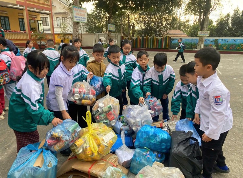 Ngay từ những năm đầu nhận nhiệm vụ, nhà trường đã chủ động hình thành Câu lạc bộ “Trường học xanh”. Ở đó, học sinh không chỉ học bằng sách vở mà còn được tự tay trang trí lớp học của mình bằng cây xanh, các mô hình tái chế, những góc học tập thân thiện làm từ vật liệu sẵn có. Mỗi lớp học trở thành một không gian mở, nơi thiên nhiên hiện diện trong từng chậu cây, từng đồ dùng nhỏ, không màu mè, không hình thức, mà gắn chặt với đời sống hàng ngày của trẻ.