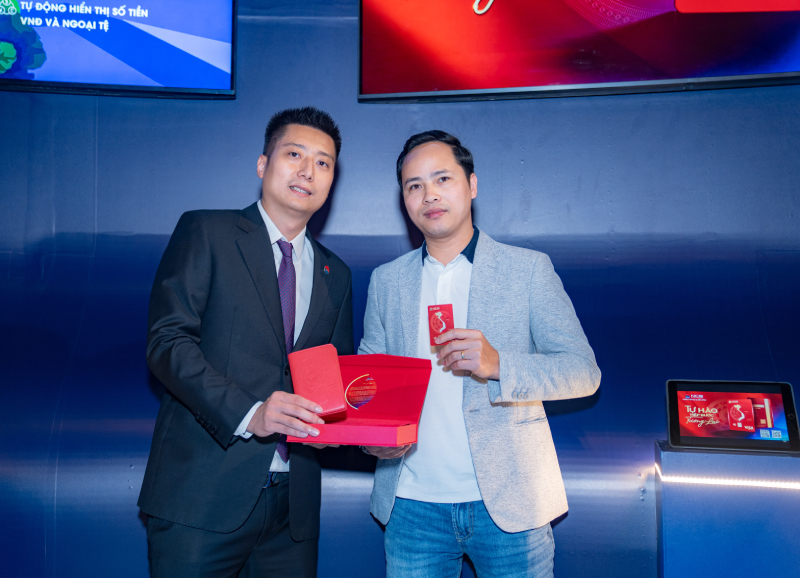 | Một trong những khách hàng đầu tiên sở hữu chiếc thẻ Visa đặc biệt của Ngân hàng NCB, ngay tại Hội thảo. |