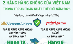 2 hãng hàng không Việt Nam trong danh sách an toàn nhất thế giới năm 2026 -