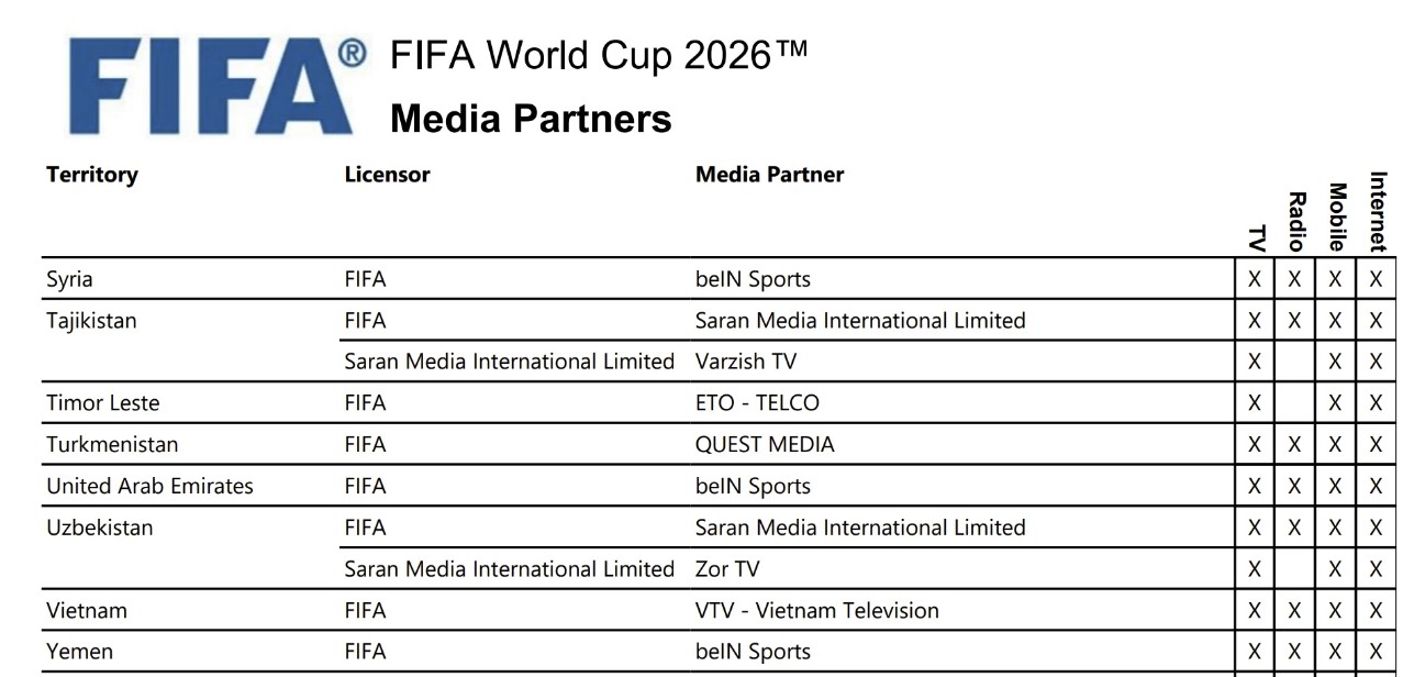 Theo FIFA, VTV đã mua “trọn gói” quyền khai thác trên 4 nền tảng bao gồm TV, Radio, Mobile (thiết bị di động) và internet. Điều này có nghĩa người hâm mộ Việt Nam sẽ được xem miễn phí World Cup 2026 bằng nhiều phương tiện và cách thức khác nhau. FIFA tiết lộ “các cuộc đàm phán độc quyền đang được tiến hành tại Việt Nam”.