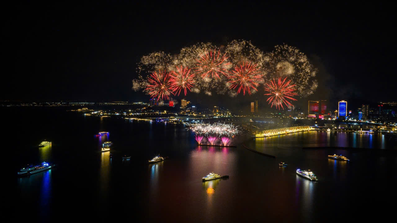 | Màn pháo hoa rực rỡ bên bờ di sản. |