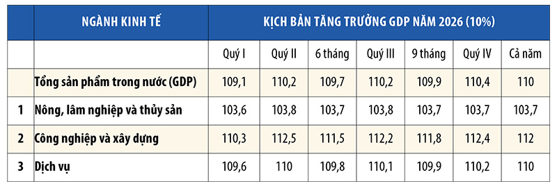 Đó là lý do Nghị quyết 01/2026/NQ-CP tiếp tục xây dựng kịch bản cho tăng trưởng kinh tế năm 2026. Không giống năm ngoái, khi Nghị quyết 01/2025/NQ-CP vạch ra tới 3 kịch bản tăng trưởng, thì năm nay, chỉ một kịch bản duy nhất, khẳng định quyết tâm đưa nền kinh tế tăng trưởng từ 10% trở lên.