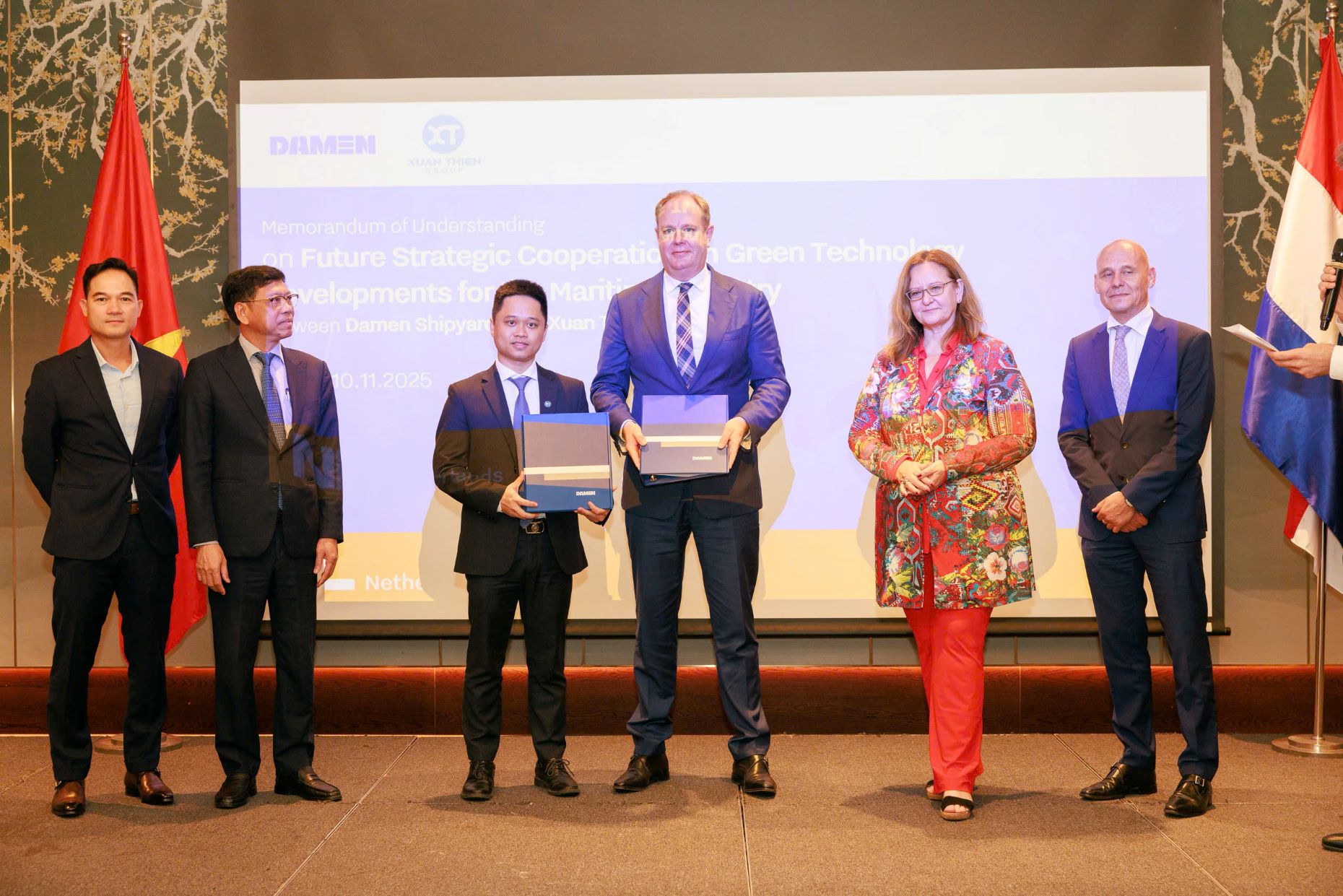 Tập đoàn Xuân Thiện (Việt Nam) và Tập đoàn Đóng tàu Damen (Hà Lan) vừa chính thức ký kết Thỏa thuận Hợp tác Chiến lược, đánh dấu bước tiến quan trọng trong việc đầu tư xây dựng nhà máy đóng tàu và phát triển các thế hệ tàu chạy bằng năng lượng xanh tại Việt Nam.