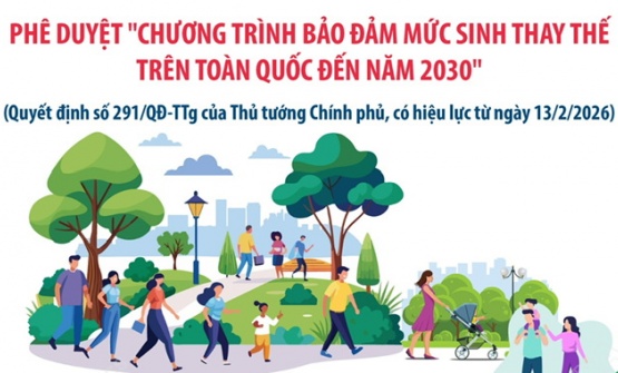 Mục tiêu của “Chương trình Bảo đảm mức sinh thay thế trên toàn quốc đến năm 2030” là tăng tỷ lệ sinh để đạt và duy trì mức sinh thay thế trên toàn quốc đáp ứng yêu cầu về nguồn nhân lực, góp phần thực hiện thành công Chiến lược Dân số Việt Nam đến năm 2030, bảo đảm phát triển nhanh, bền vững đất nước.