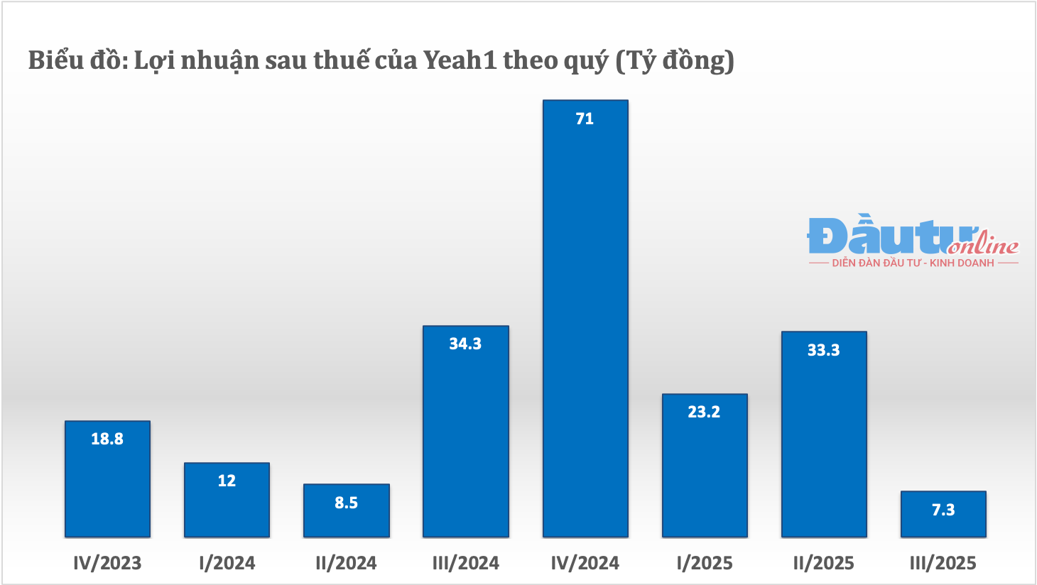Do đó, lợi nhuận sau thuế quý III/2025 của Yeah1 còn 7,3 tỷ đồng, giảm đến 78% so với cùng kỳ năm ngoái. Đây là quý có lợi nhuận thấp nhất trong vòng 2 năm qua của Yeah1.